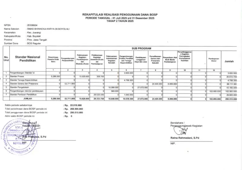 Laporan Penggunaan dana BOSP tahap 2 2025